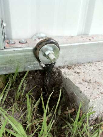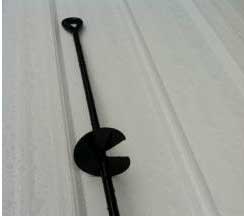 The photo below is a hurricane anchor. It is a solid, heavy duty steel anchor which is machine drilled about 3 feet into the ground. ![]() |