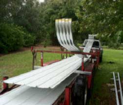 ![]() Everything starts when the manufacturer delivery vehicle arrives with your pre-engineered steel building to install on your level building site. |